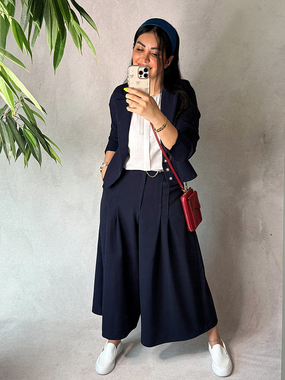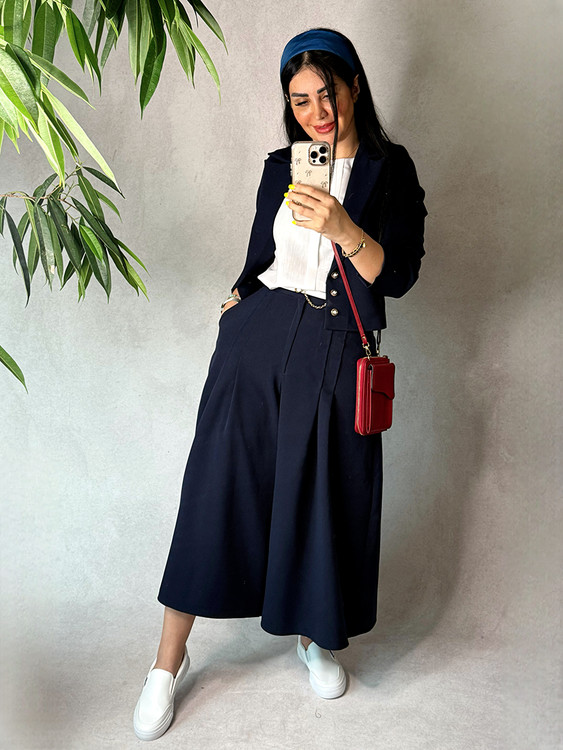 کت و شلوار مناسب چهار فصل است که در تابستان با تاپ و در پاییز با شومیز یا بلوز و در زمستان با بافت و یقه اسکی میشه استایل کرد.
