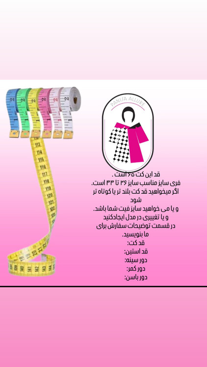( در صورت سفارش به سایز خودتون قد استین،قد کت،دور سینه،دور بازو،دور حلقه را در قسمت توضیحات بنویسید)
